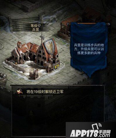 在游戏中兵营的作用就是出兵,随着兵营等级的提升玩家可以造的兵种也就会越多,这样玩家在游戏中就拥有了强力的兵力保护自己。在游戏中当玩家的城堡等级达到六级,那么新手保护就消失了,这也就意味着玩家可以被其他玩家所攻打,而玩家想要在游戏中生存下去,那么就需要拥有足够的兵力抵御敌人的进攻才可以,从这一个角度来看,兵营这一个建筑就是玩家在游戏中生存的根本。