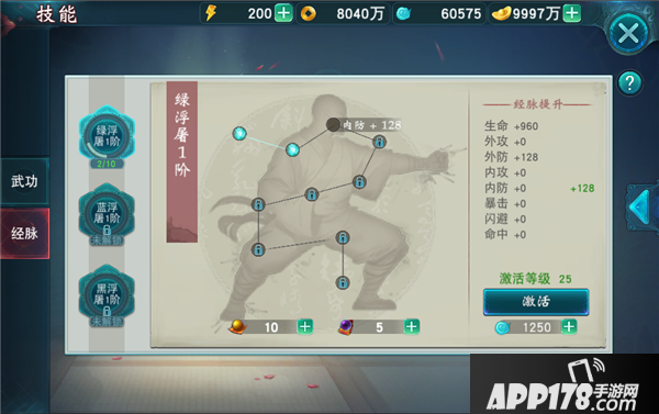(2)激活每个经脉点需要消耗真气;