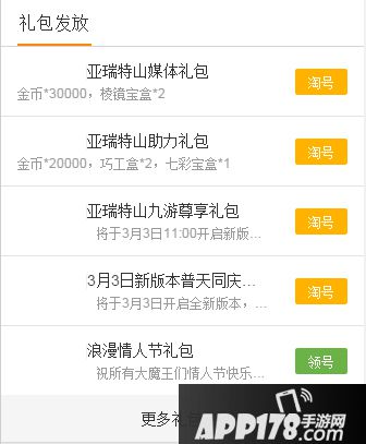 步骤3:或者直接查看"游戏礼包",点击领号、淘号、预定即可;