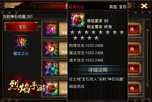 宝石虽好,但驰骋战场的勇士们总不能望石止渴,而应该将其占为己有,佩戴在身。在《烈焰手游》土城的NPC宝石商人处,勇士们便可消耗神石结晶来兑换极品宝石。巧妇难为无米之炊,勇士们只有拥有了充足的神石结晶后,才能获得能横扫天下的最强宝石。