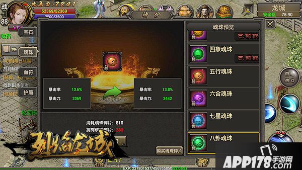 仙峰游戏旗下的攻城PK手游《烈焰龙城》,还原经典76版本,再现全自由PK团战、万人攻沙的热血盛况。《烈焰龙城》有一些装备让玛法勇士们如虎添翼,除了基础的武器、衣服等,还有魔饰等绝世圣器,更有特殊装备如宝石、护盾、血符等等,它们的特殊属性,能够极大提升战力。其中魂珠就是这样一件逆天装备,附带强大的暴击率和暴击力,进化魂珠品质,霸业巅峰不远矣!