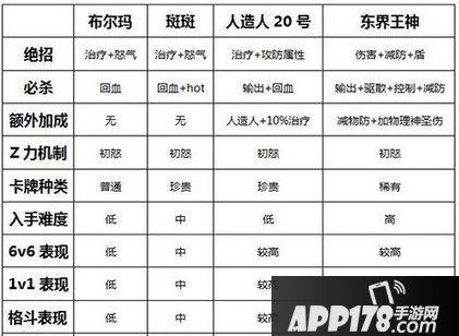 龙珠激斗东界王神全新辅助强势登录,龙珠激斗东界王神的降临,游戏也从之前的三胸争霸变成了四辅抢位的局面。俗话说僧多粥少,游戏里面自然也不例外,当有越来越多的可选辅助角色的时候,我们如何根据他们各自的优劣进行选择和排阵,将成为摆在大家面前的一道难题,本次我们就将他们统统摆上台面,给大家带来最直观的比较。