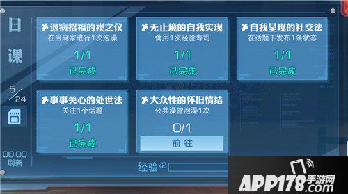 活动里的日课基本是送经验的。一次5000玩家经验,内容主要是吃经验寿司。泡澡。杀野怪。通关等等都很简单,每天刷新5个。一共2.5W经验一定记得做了