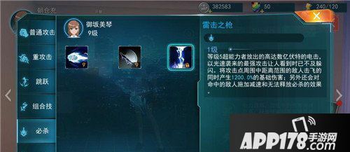 三技能:雷击之枪(美琴只对当麻用过的大招,咱等级太低还没学伤心)美琴将攻击点周围中距离范围的敌人击飞的同时产生1200.0百分之的基础伤害;另外还会堆命中的敌人施加减速和无法释放必杀的效果(很强悍的技能和效果哦)。
