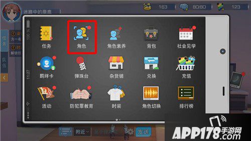一、打开手机,点击角色。