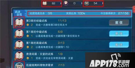 分为副本任务、物资任务,完成后可分别获得剧情闯关积分、采集积分,同时可以为社团积累经验以及社团基金,提升贡献度。
