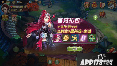 活动三:首次充值送紫色英雄余薇。在游戏内首次充值任意金额,即送紫色强力英雄——余薇,另外还有丰厚金币、装备等道具奖励!