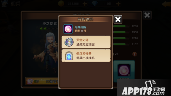 培养结晶获得途径:1.通过天空之塔的对应塔层来获得; 2.通过剧情副本的佣兵打怪兽挂机获得。