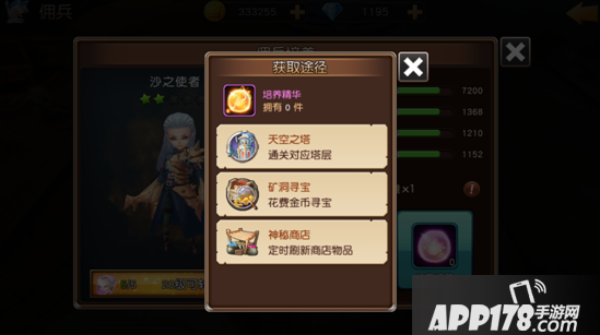 培养精华获得途径:1.通过天空之塔的对应塔层来获得; 2.通过矿洞寻宝来获得; 3.通过神秘商店获得。