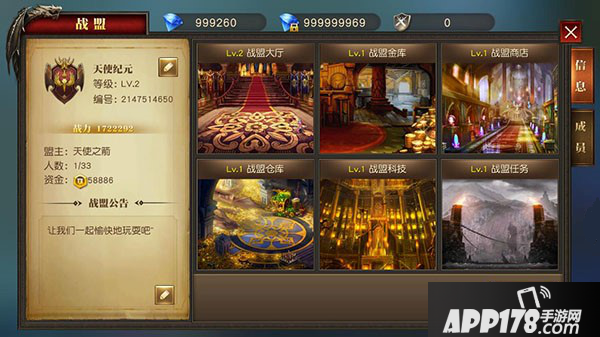 战盟保留了一般公会系统都有的功能:战盟大厅、战盟金库、战盟商城、战盟科技。并依托这些功能让玩家可以组团来提升战力、攻城略地。