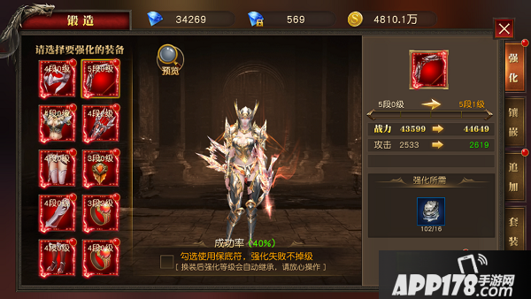 消耗一定数量的强化材料进行装备强化,提升装备的强化等级,同时能够提升装备的属性。