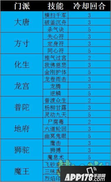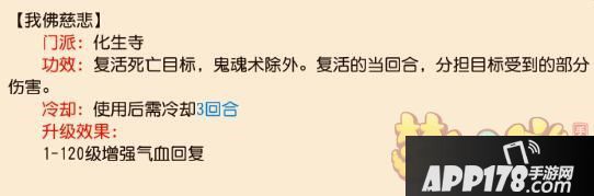 从上图表大家可以发现辅助孩子:化生、普陀、地府的3项技能冷却时间均为2、3、5回合。