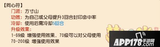 选择方寸的孩子需要注意方寸孩子的封印命中问题,基础符法攻击后可以提升封印命中率,使用技能后一样消耗此状态,而方寸孩子真正的封技只有失心和定身,一旦连封2个技能都不中,将面临再等待2回合后才能连续使出失心定身。如果按定身失心的顺序释放还会降低封命中。同心符对于父母方寸的效果还不错,对于自身也是属于比较费回合,也考验站桩能力,平时在无法封印回合也是充当配速卡药或者防御吸收伤害等作用。