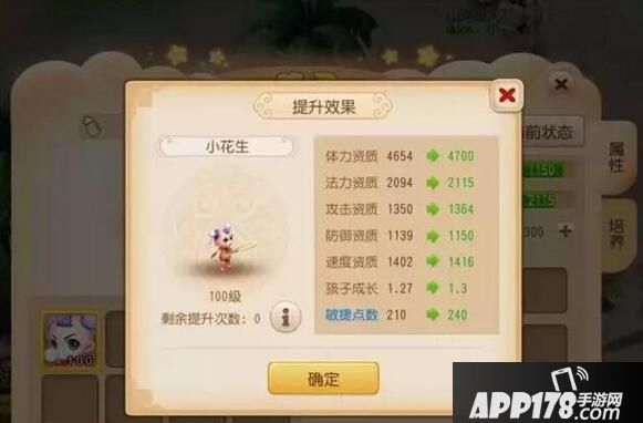 最后,除了增加孩子的某项固定属性外,孩子的各种资质和成长也会得到提升。