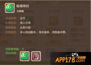闯关类小副本,每天通关一次可以获得一定的银币,还有强化石、炼兽真经等。每天挑战进度排行前30的玩家还可以领取额外的奖励。