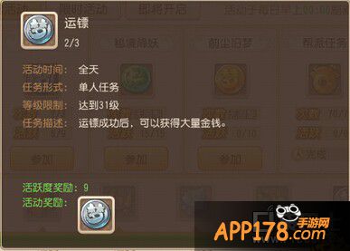 每天活跃度达到50级以后就可以开始运镖了,手游版的运镖有两种模式,一种是直接产出银币,但是不多,一次几万每天3次,还有一种模式是运送高级镖,花50万押完以后给你5个箱子,箱子可以开出各种物品,运气好可以赚不少钱。