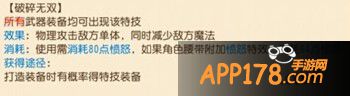 点评:破碎无双这特技在PK中十方常见,破碎无双运用在物理输出门派身上能完美地发挥出它的能力,利用爆发的输出攻击对手,从而又能减少对手的魔法。推荐部位头盔、鞋子、项链、铠甲。