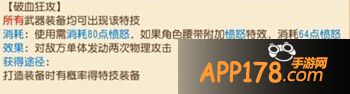 消耗:使用需消耗80点愤怒,如果角色腰带附加愤怒特效,消耗64点愤怒。