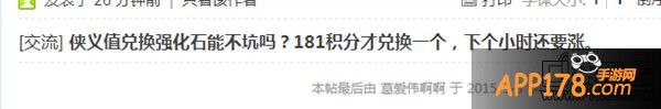 侠义值是可以换取强化武器的必要材料,而梦幻团队将强化石兑换所需侠义值提升,本来侠义值就不容易获得,如此一来普通玩家与土豪的差距越来越大。