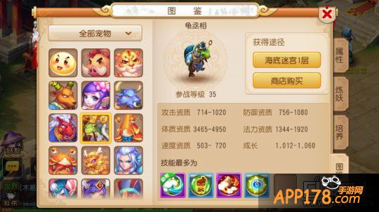 龟丞相,区区35级时就已经可以携带,而最大体力资质却可以高达4950,秒杀很多高级别才能携带的召唤兽,而且还有四个技能栏之多。最要命的是,在完成红尘试炼任务的时候,系统还会赠送你一只各方面都还不错的龟丞相,简直就是低级玩家中的良心血宠!