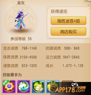 龙女以自身妩媚的身姿,赢得了不少女性观众的追求。除此之外,龙女体质、速度、法力等资质在同等级宠物中都很不错。技能携带方面:高级水属性吸收、水攻、神佑复生、驱鬼。结合资质和技能方面看,龙女既能是一名出色的血宠,也能成为一名高爆单法宠。如此多样的选择,怎能不受大伙的欢迎呢?