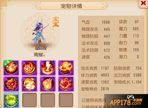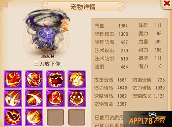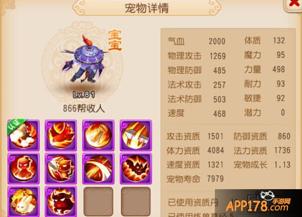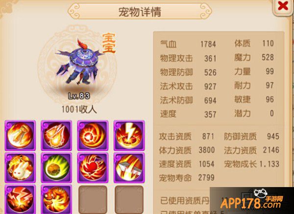 点评:这个宝宝上榜的理由就是玩家别出心裁的宝宝技能书。从资质方面看这个宝宝明显是不合适打攻宠用的。但是却有着高级连击和高级必杀这两个物理输出的技能。法资2146明显是法宝宝的胚子。玩家可能会有疑问这样的宝宝有用吗?其实这个的宝宝还是挺好用的。因为如果宝宝修炼高的话。即使属性点加的力量不多。但是输出的数据还是非常可观的。至于加点方式如果是能稍微加点力量的话那就更加完美了。手游里面不建议玩家模仿这样的宝宝打书。虽然很有个性。但是实用性方面肯定没有全部是同一类型兽决的宝宝来的好。