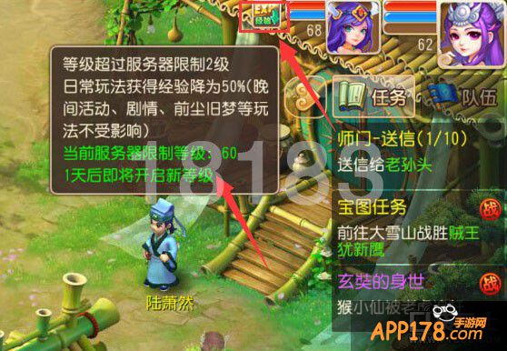 小编的等级是54级,天下无双服务器最高等级67,可以推测这个服的等级限制是65级,而小编低于限制等级10级获得了5%的经验加成(仅限抓鬼、挂机、副本)。