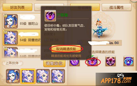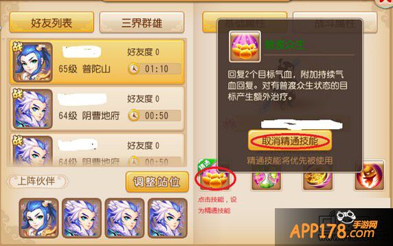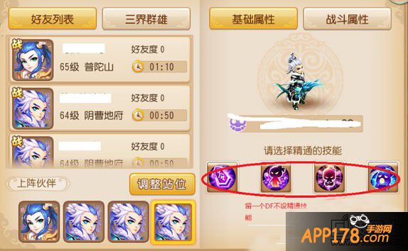 2.点助战——>好友列表——>邀请刚才添加的4个好友助战——>设置精通技能(其中一个地府精通技能不设置)