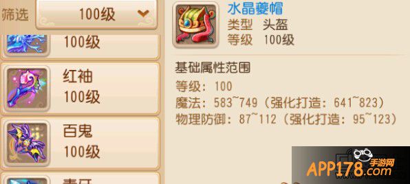 100级的头盔,增加 87 - 123 物理防御。