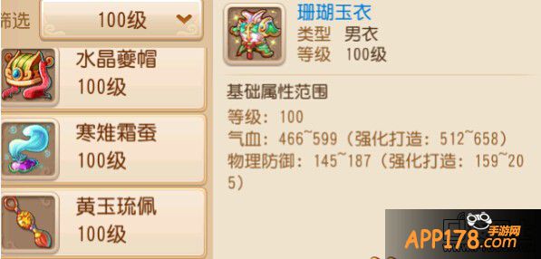 100级的衣服,增加 145 - 205 物理防御。
