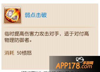 弱点击破是适合PK的战略型特技,可以根据PK情况选择要不要戴这件装备。消耗的愤怒较少,在PK中适合对付耐多的召唤兽和人物。