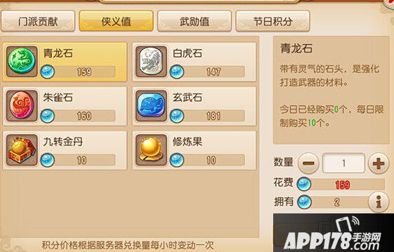 商城里的强化石目前只能靠侠义点来兑换,而且耗费的侠义点随着服务器兑换量每小时刷新的,60级的装备强化打造就需要6块强化石了,70级的需要8块强化石……(100级的需要100块)。一些没有充钱的玩家想要打造极品装备,只能靠日复一日的刷侠义来兑换石头打造装备,看着这茫茫多的侠义点(默默的流泪),所以每天都尽量吧侠义值拿满吧。