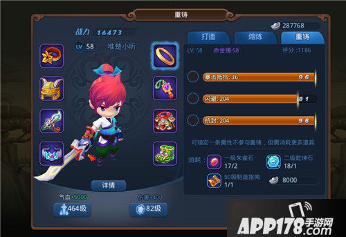 每件装备的基础属性会有数据浮动,您可以通过重铸装备追求极品装备(50开启重铸功能)