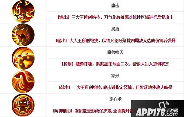 三位大王从百兽生死相搏中领悟拿手秘技,狮搏、象形、鹰击均糅合了力量与咒语。
