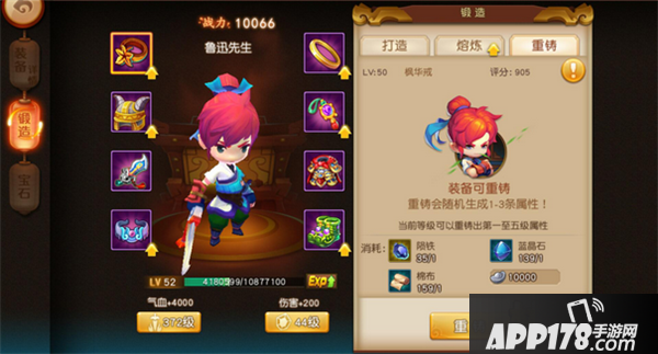 2、重铸玩法消耗的材料是陨铁、乾坤石和五行石,当然还需要一些银两;