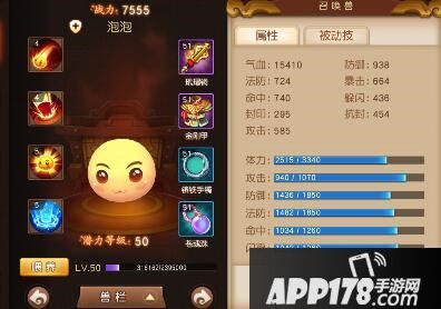 有不少玩家吐槽泡泡的攻击能力,但实际不要忽略泡泡具有不错的双防资质。这一优势让泡泡成为全局能手,虽然没有变异形态,但2090的体力、1160的防御和法防,搭配790的闪避和命中,让670的攻击资质也显得不那么无用了。