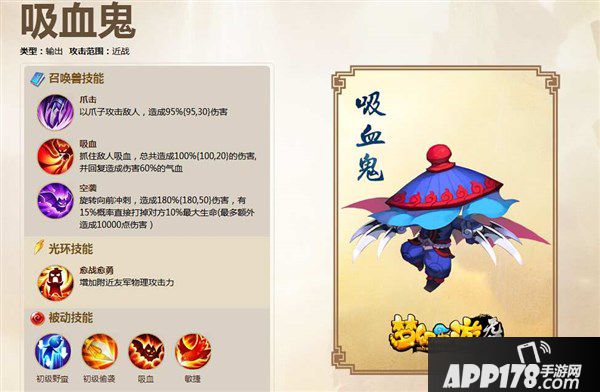 4、吸血鬼:吸血鬼也是输出型宠物,三个技能都是输出,带吸血技能,空袭技能伤害高。