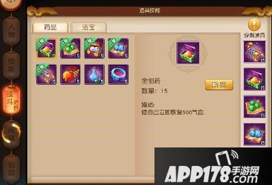 战斗药品可补充气血、法力。