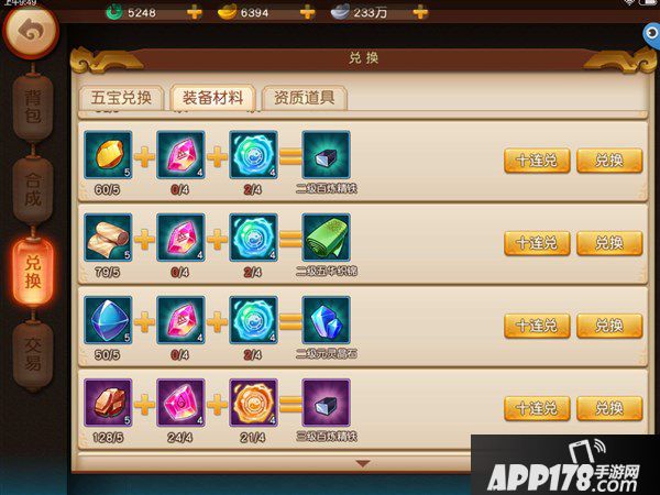 二级百炼精铁(元灵晶石、五华织锦)=二级五行石×4+二级乾坤石×4 材料可以订购这里就不说了