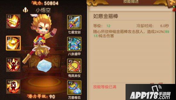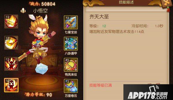 技能4:齐天大圣 增加友军物理法术攻击,极其霸道,物法双加