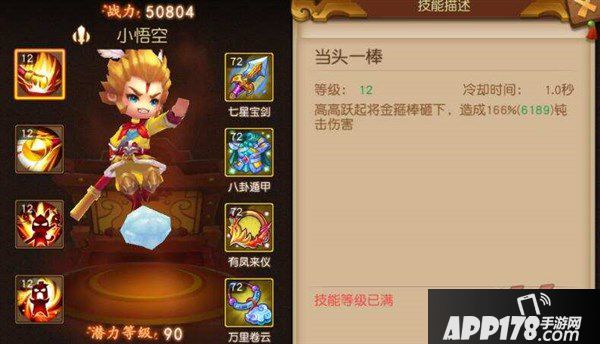 技能1:当头一棒 1秒的冷却时间输出达到166%,很是可观。