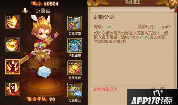 技能3:幻影分身 190%的伤害输出,25%的几率击晕敌人,覆盖范围十分广