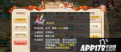 活动描述:挑战其他玩家,提升自身段位,可获得经验和积分奖励。积分可在积分商城中兑换珍稀道具。一周为一个赛季,赛季结束会根据段位发放段位奖励。
