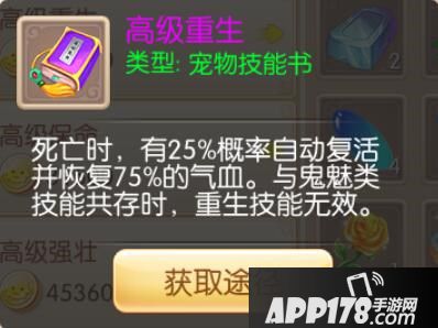 这里需要注意的是,如果宠物身上有鬼魅相关的技能了,只能触发鬼魅技能,重生类的技能是无法起作用的哦。