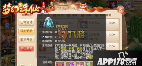 幻月洞府任务详解幻月洞府会在每周的二、四、六的21:30-22:30开启,在活动期间,达到30级的玩家点击活动日程里的限时活动便可在显眼处找到并参与。此副本有大量经验及丰富道具奖励,机智的小伙伴们可不要错过哦。