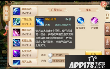 魔音破灵:依次法术攻击3个目标,使用之后虚弱一回合。连携技,可触发友方圣巫队友使用刀剑破降低地方物理防御,持续2回合。气血要求:当前气血≤气血上限50%。可搭配轮回天书使用,提升气血上限要求,提高轮回点的同时提升气血上限。这个技能个人理解就是法版鬼影,不过贵在法术伤害不可被防御,而鬼王的鬼影为物理伤害可被防御,而且魔音的伤害绝对不低于鬼影,也是灵音的核心输出技能之一。