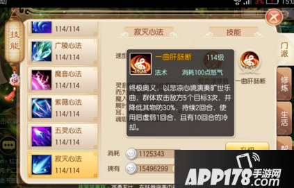 一曲肝肠断:一曲肝肠断,天涯何处觅知音。灵音殿终极奥义,以悲凉心境演奏旷世乐曲,群体攻击敌方5个目标3次,降低攻击目标30%物理防御,持续2回合,使用后虚弱1回合,10回合内无法再次使用。这个技能厉害在降防,灵音殿先手开大,后面跟上合欢、鬼王、苍羽,我只想问你:你想怎么死?