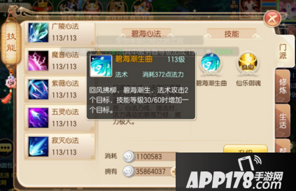 碧海潮生曲:回风拂柳,碧海生潮。法术攻击2个目标,在门派技能30/60级时增加一个目标。灵音殿群体法术攻击,也是每个门派都有的入门心法。此技能为灵音殿PVE日常任务主要输出,开全灵点输出不亚于任何门派。