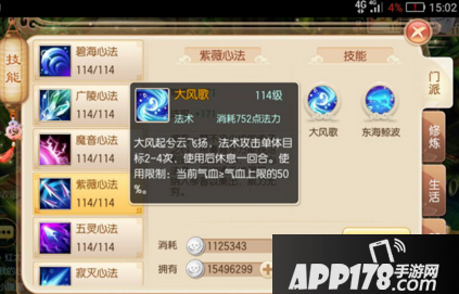大风歌:大风起兮云飞扬,法术攻击单体目标2-4次,使用后休息一回合。气血要求:当前气血≥气血上限50%。其实这个就是法版鬼王的鬼狂击,不同于鬼王的是该技能极其不稳定,最高可攻击4下,最少2下,在这个看脸的年代,颜值高的人自然而然的就会攻击4下咯。打出俩下的少侠也会被称为会休息的“焚香”,可搭配轮回天书使用,提升轮回点提高下一段大风歌攻击概率。最高为10%。