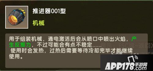 胖哒也从熊二那里带了推进器回来,摆在屋子的角落,可以用开关给推进器通电,但是这样是没有什么实质用途的哦(可以当装饰),想要真正发挥推进器的价值要配合机械车间制作载具使用!